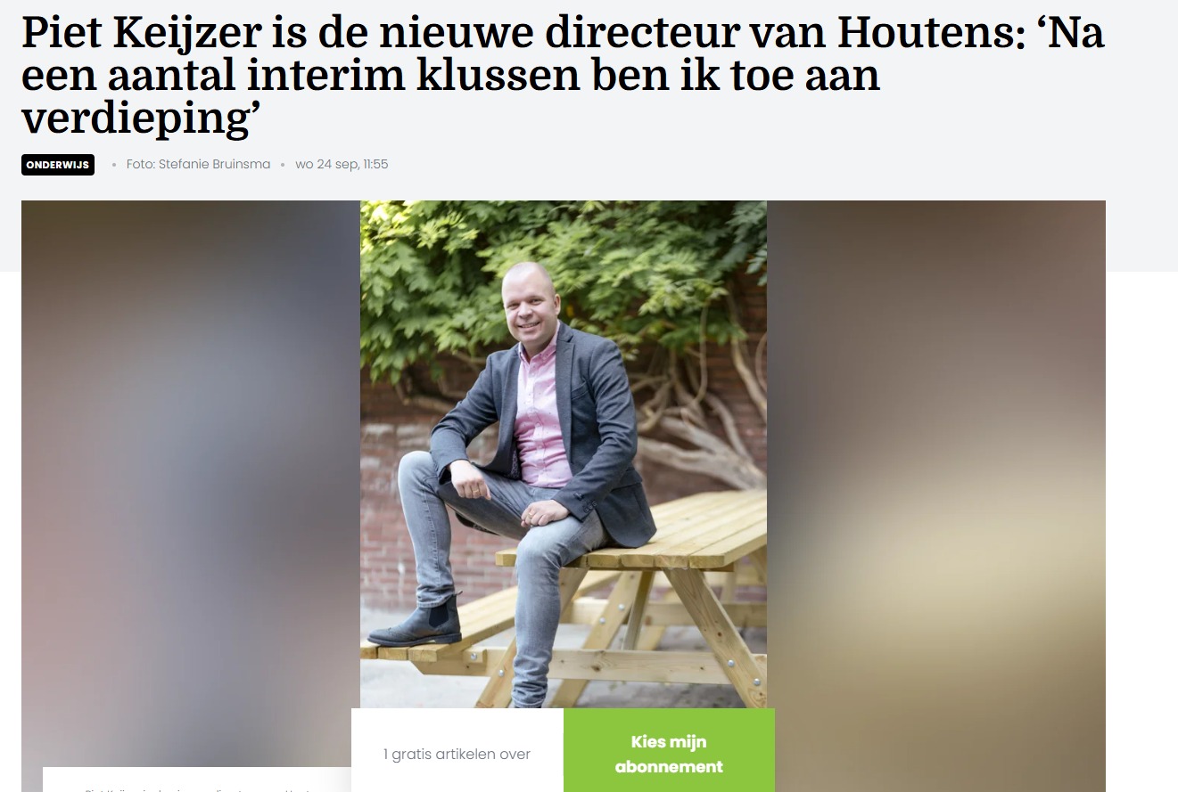 Geplaatst op 3 oktober 2025Dit schooljaar is Piet Keijzer gestart als directeur van Houtens. ‘t Groentje, Houtens Nieuws, heeft hem geïnterviewd om Houten en omstreken kennis met hem te laten maken. Piet neemt een schat aan ervaring mee uit het onderwijs en kijkt ernaar uit om samen met het team en de leerlingen verder te bouwen aan een toekomstgerichte